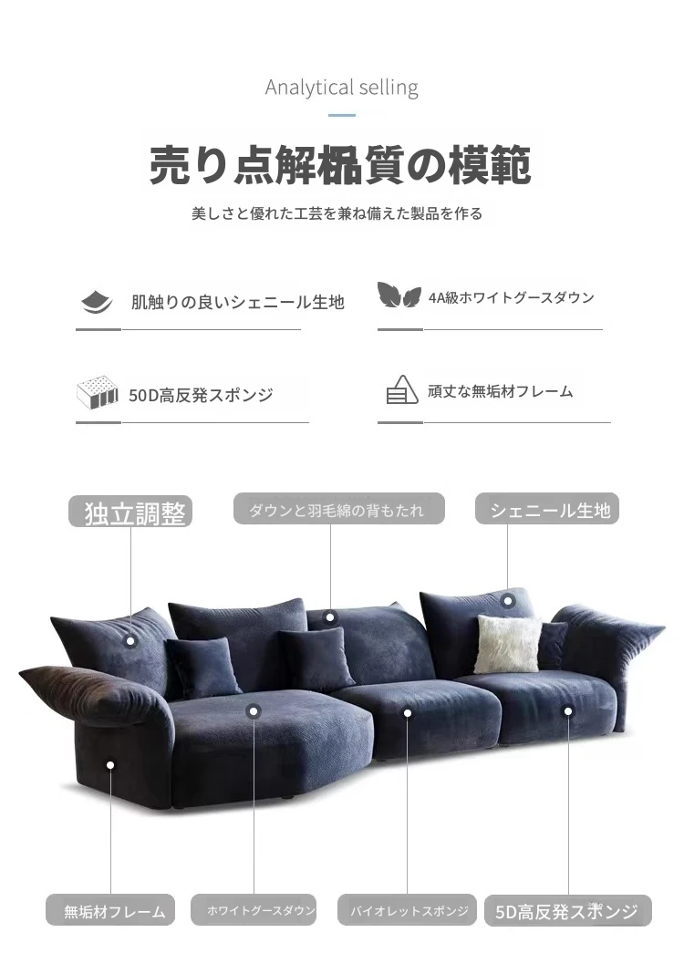 「豪華なデザイン!ミネラルペタルソファ - イタリアンスタイルの異形デザインで大空間にぴったり。星石ファブリックを使用し、ビラのリビングに最適な洗練されたコンビネーション!」