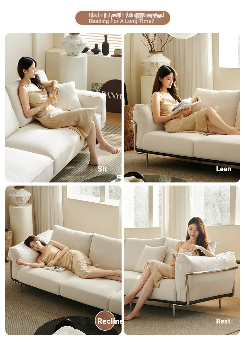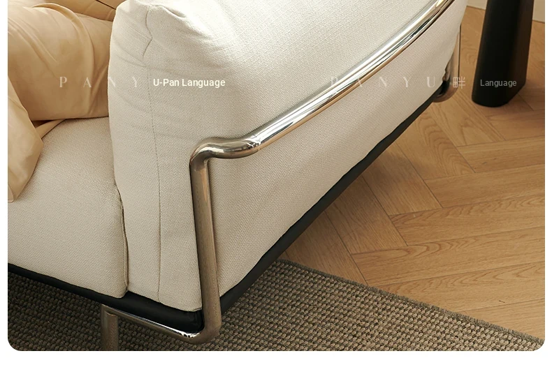"Vintage Bauhaus Style Wabi-Sabi Sofa for Small Spaces - Designer Cotton-Linen Fabric Couch for Living Room"