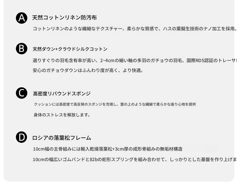 【スタンダード版】 四人掛け2.6メートル【ダウン充填】【ステンレスアームレストなし】