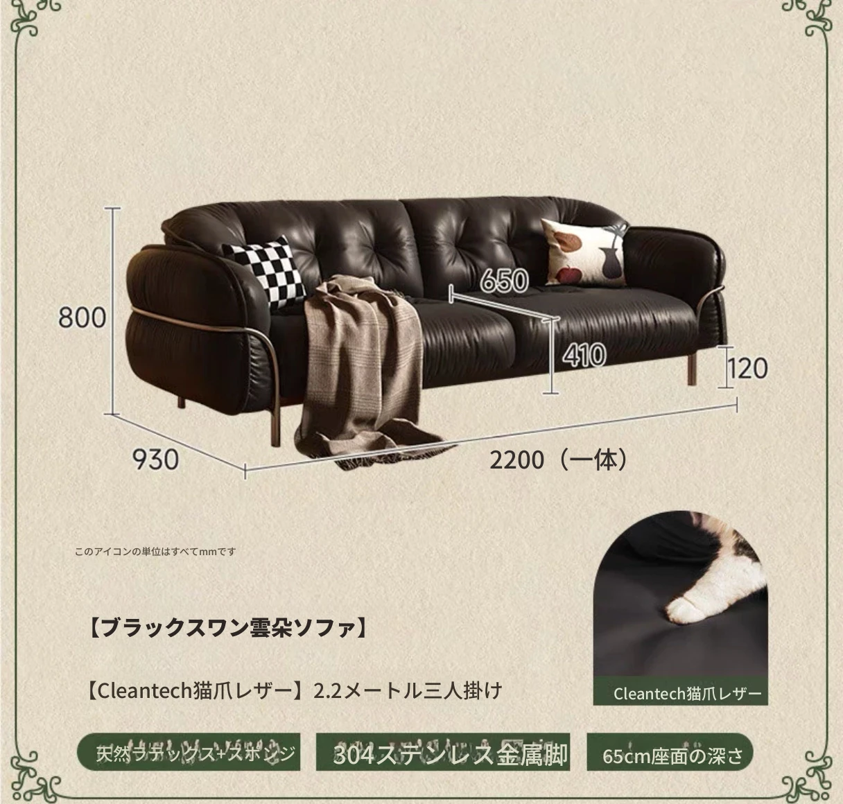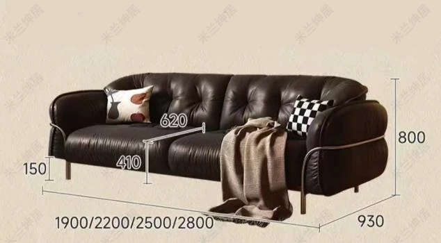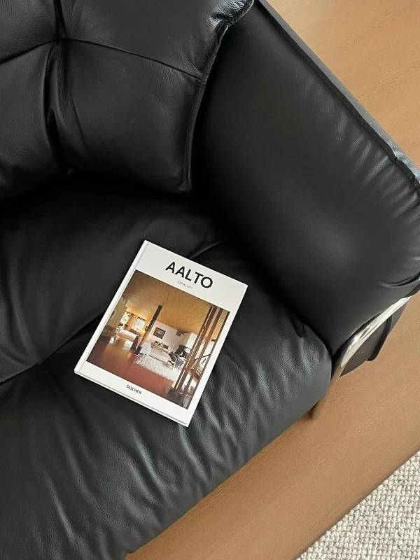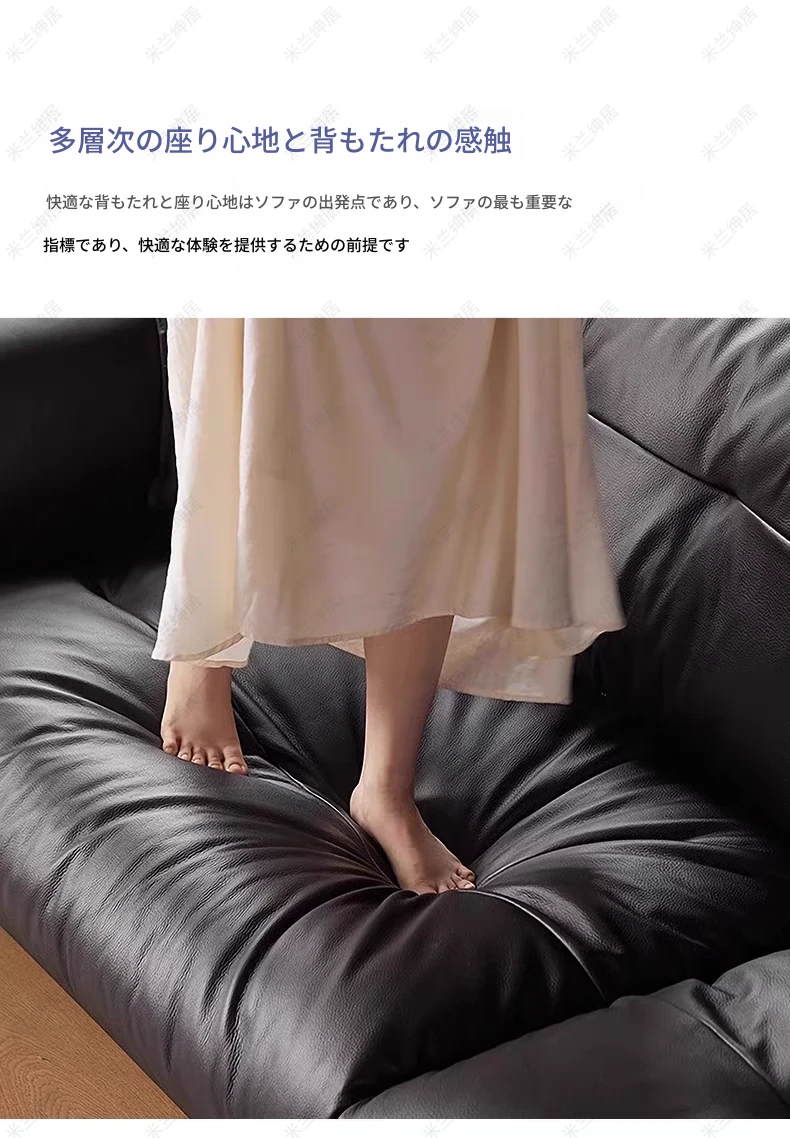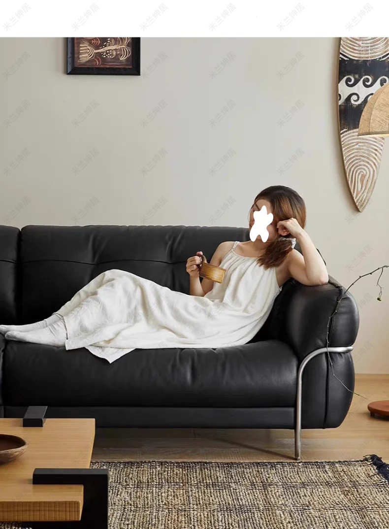 中古のブラックスワン雲朵スタイル皮革ソファー - バウハウスデザインで小さなリビングにもぴったり!ステンレススチール製のレトロなストレート3人掛け家具で、スタイリッシュな空間を演出します。