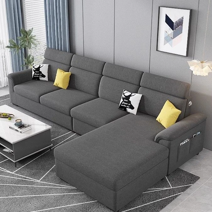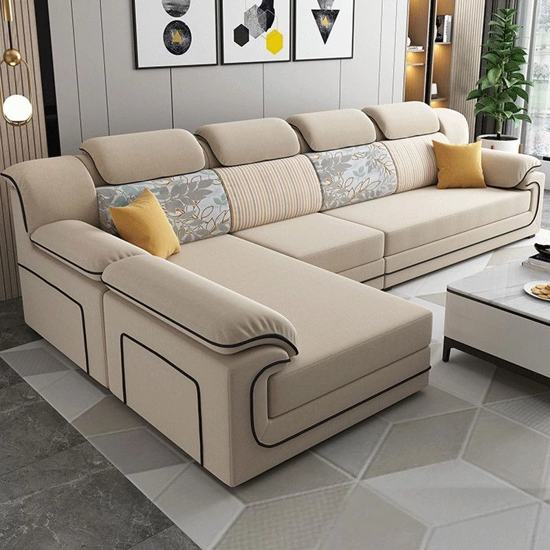 新作U型洗えるコットンリネンソファ 大型リビングに最適なコンビネーション家具!涼感マットとラテックスクッション付き、快適な貴妃ソファで優雅なひとときをお楽しみください。