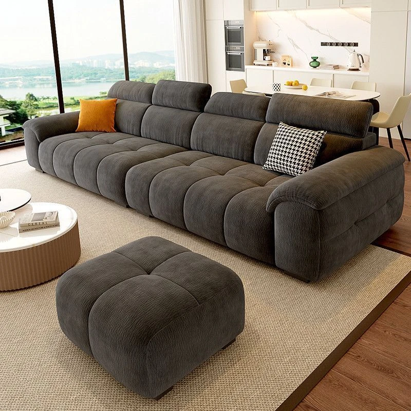 2025年新登場!イタリアンミニマリズムデザインのクリームカラーリビングソファ。猫の爪にも優しい布製、スタイリッシュで快適なカウチソファセット。あなたのリビングに洗練された雰囲気をプラス!