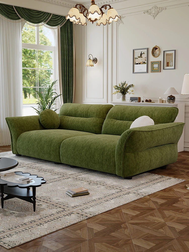 フレンチビンテージ・シェニールベルベット・エレファントイヤー・ピアノキーソファ|モダンミニマリスト向け・小スペースに最適なストレートソファ|おしゃれで快適なリビング空間を演出!